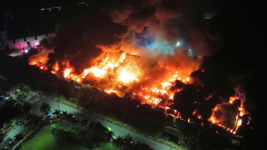 VOV.VN - Đám cháy kèm tiếng nổ và lửa lớn tạo thành cột khối cao hàng trăm mét tại Công ty Cổ phần Công nghiệp Quảng An 1, xã Đại Đồng thuộc KCN Tiên Sơn (Bắc Ninh).