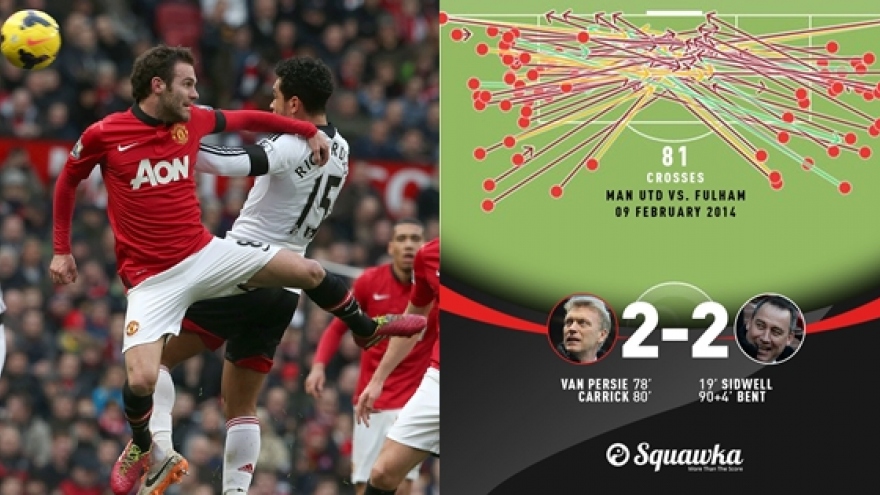 VOV.VN - MU biến "taca-dada" (tạt cánh đánh đầu) thành khái niệm phổ biến trên mạng xã hội sau khi tung ra 81 quả tạt trong trận hòa Fulham 2-2 hồi năm 2014.