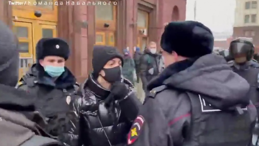VOV.VN - Yulia Navalnaya - vợ của thủ lĩnh đối lập Alexei Navalny chuyên chỉ trích Tổng thống Putin, vừa bị bắt giữ trong một cuộc biểu tình trên đường phố Moscow.