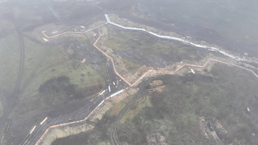 VOV.VN - Các bức ảnh chụp từ trên cao sau do quân đội Ukraine cung cấp. Chúng cho thấy hệ thống công sự kiên cố của Nga quanh ngôi làng Volodymyrivka đang do Nga kiểm soát. Ngôi làng nằm gần Bakhmut ở tỉnh Donetsk mới bị Nga sáp nhập.