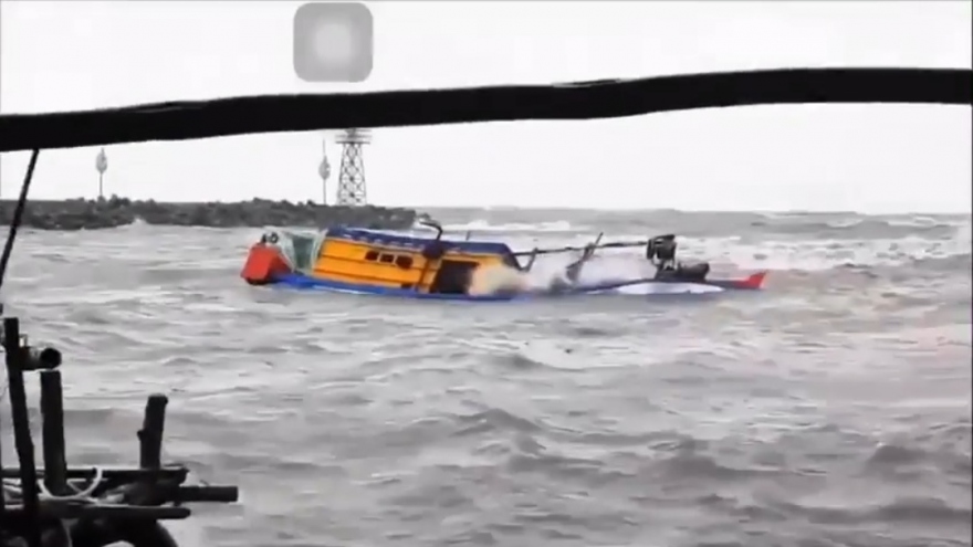 VOV.VN - Khoảng 15h30 chiều (12/7), một tàu cá đang trên đường vào bờ tránh mưa bão do áp thấp gây ra thì bị sóng đánh chìm. Lúc đó trên tàu có 7 người, 5 người đã bơi vào bờ, còn 2 người đang mất tích.