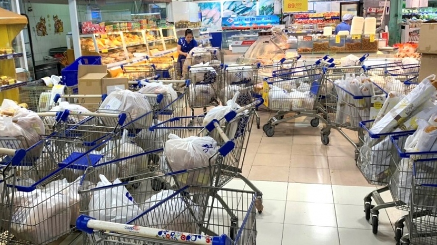 VOV.VN - Siêu thị bán hàng theo hình thức phát phiếu mua hàng, chính quyền phối hợp với siêu thị bán hàng theo combo mang đến tận nhà là những cách làm mới trong cung ứng hàng hóa tại TP.HCM.