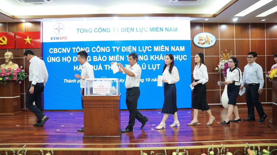 VOV.VN - Chiều 20/10, Tổng công ty Điện lực miền Nam (EVNSPC) đã phát động và tổ chức chương trình quyên góp ủng hộ đồng bào miền Trung khắc phục hậu quả do thiên tai, lũ lụt.