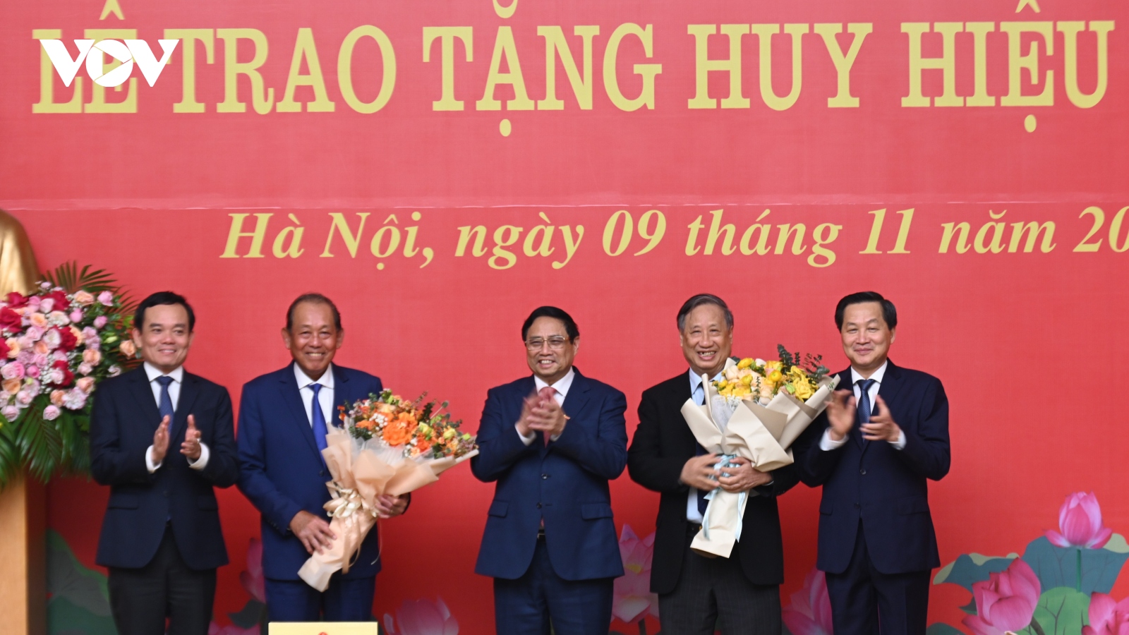 VOV.VN - Chiều nay (9/11), Thủ tướng Chính phủ Phạm Minh Chính trao tặng Huy hiệu 45 năm tuổi Đảng cho đồng chí Phạm Gia Khiêm, nguyên Ủy viên Bộ Chính trị, nguyên Phó Thủ tướng Chính phủ và trao tặng Huy hiệu 50 năm tuổi Đảng cho đồng chí Trương Hòa Bình, nguyên Ủy viên Bộ Chính trị, nguyên Phó Thủ tướng Thường trực Chính phủ.