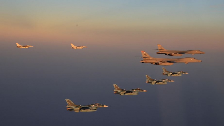 VOV.VN - Bộ Quốc phòng Nhật Bản cho biết, bắt đầu từ chiều qua (5/11), Lực lượng Phòng vệ trên không Mỹ - Nhật đã tiến hành các cuộc tập trận chung trên Biển Hoa Đông, phía Tây Bắc đảo Kyushu, miền Nam Nhật Bản, với sự tham gia của nhiều máy bay ném bom của cả hai nước.