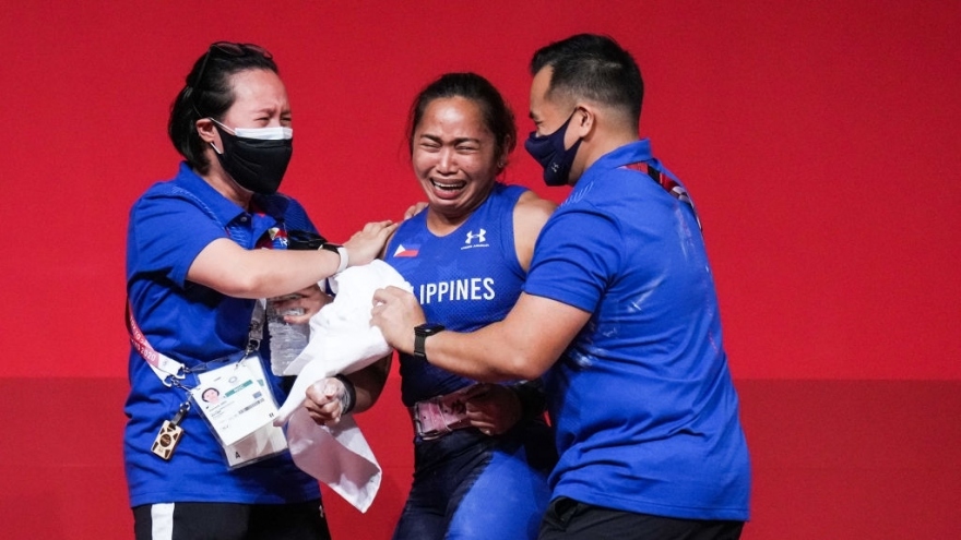 VOV.VN - Vận động viên Hidilyn Diaz của Philippines và ban huấn luyện đội cử tạ nước này đã khóc như mưa khi giành tấm HCV lịch sử cho thể thao nước này.
