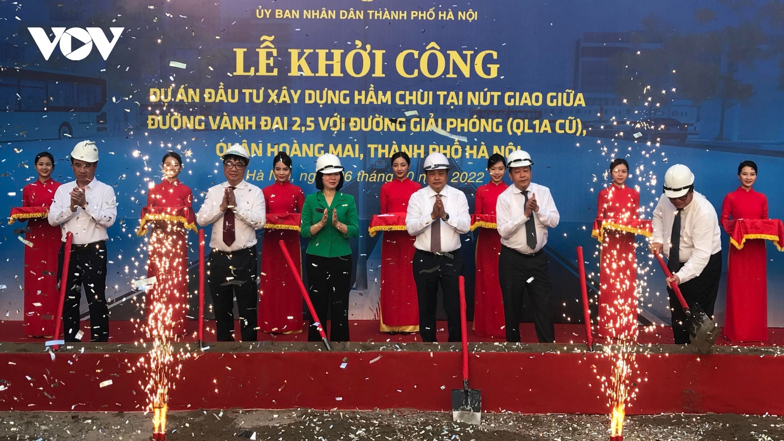 VOV.VN - Hôm nay (6/10), TP Hà Nội chính thức khởi công xây dựng hầm chui nút giao Giải Phóng-Kim Đồng với đường Vành đai 2,5, tổng mức đầu tư xây dựng công trình gần 800 tỷ đồng và dự kiến hoàn thành năm 2025.