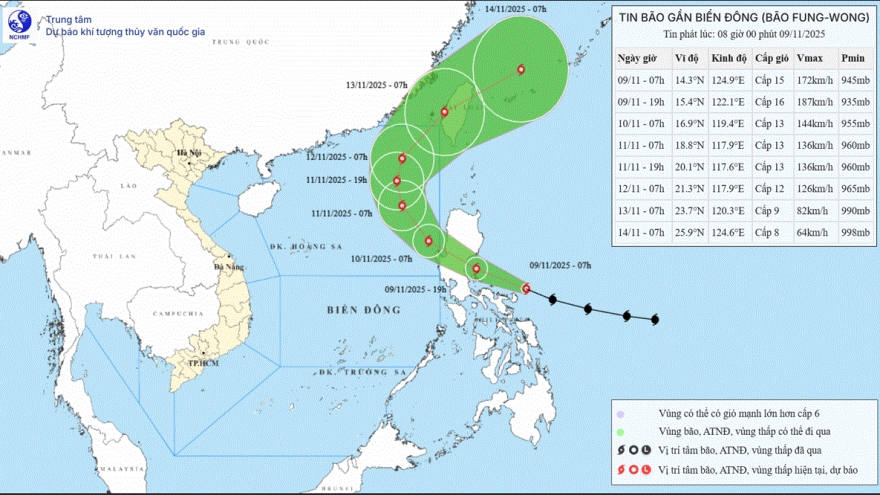 VOV.VN - Hồi 13h chiều nay (11/11), cơn bão số 14 đang hoạt động trên vùng biển phía Đông khu vực Bắc Biển Đông với sức gió mạnh cấp 11, giật cấp 14. Dự báo, bão di chuyển theo hướng Bắc với tốc độ khoảng 10 km/giờ, gây biển động dữ dội và ảnh hưởng nghiêm trọng đến hoạt động tàu thuyền.
