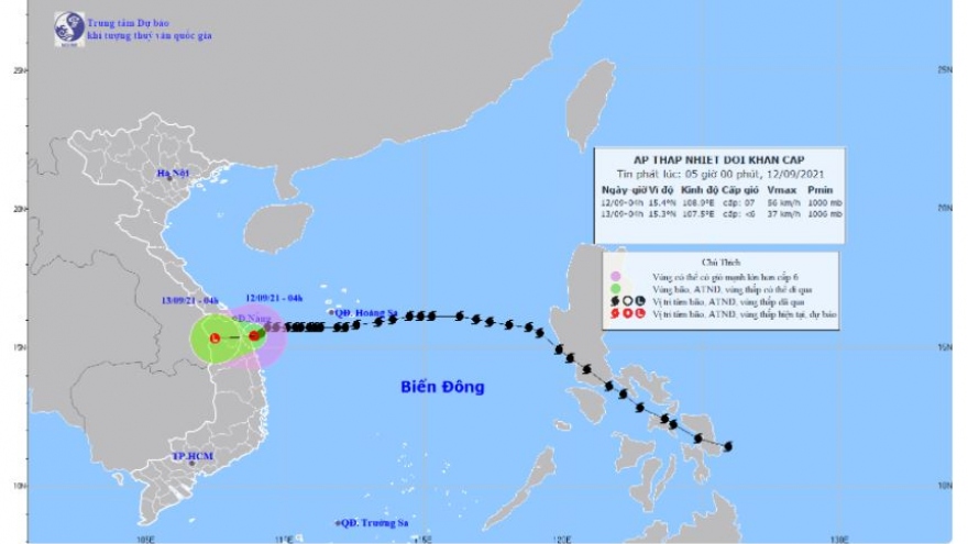 VOV.VN - Hồi 4h ngày 12/9, vị trí tâm áp thấp nhiệt đới ở khoảng 15,4 độ Vĩ Bắc; 108,9 độ Kinh Đông, ngay trên vùng biển từ Đà Nẵng đến Bình Định. Sức gió mạnh nhất vùng gần tâm áp thấp nhiệt đới mạnh cấp 7 (50-60km/giờ), giật cấp 9.