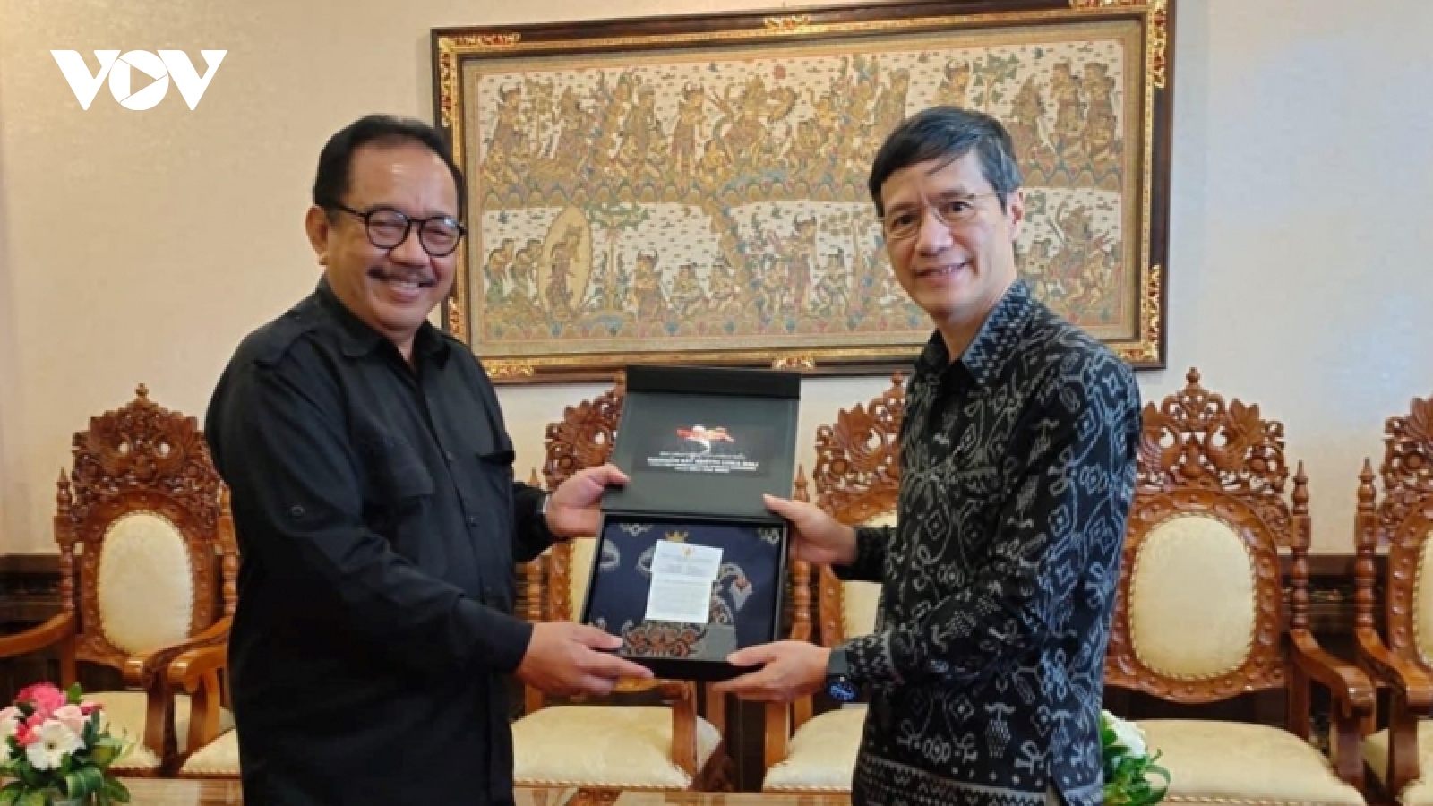VOV.VN - Đại sứ Đặc mệnh toàn quyền Việt Nam tại Indonesia, Phạm Vinh Quang đã thăm và làm việc tại tỉnh Bali của Indonesia để trao đổi kinh nghiệm sống chung với đại dịch, chia sẻ kinh nghiệm mở cửa nền kinh tế, du lịch; góp phần tăng cường quan hệ Việt Nam - Indonesia.