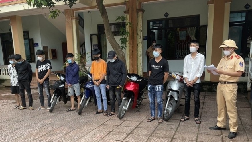 VOV.VN - Ngày 31/8, Công an phường Xuân Đỉnh, quận Bắc Từ Liêm (Hà Nội) xác minh và ra quyết định xử phạt hành chính đối với 9 thanh thiếu niên đi xe lạng lách đánh võng thông chốt kiểm dịch.