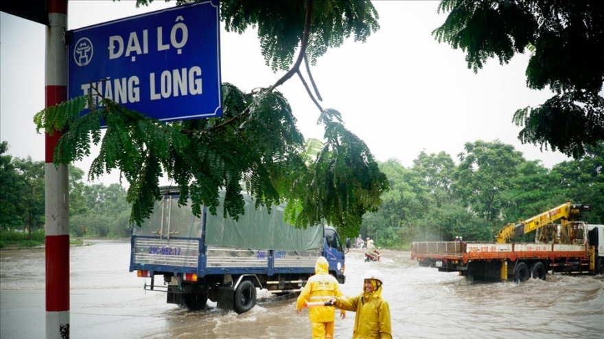 VOV.VN - Do đường gom hai bên Đại lộ Thăng Long, nhiều hầm chui dân sinh có tình trạng ngập úng, Sở GTVT Hà Nội vừa có phương án phân luồng cho phép xe máy, xe buýt được đi lên làn đường cao tốc (đường dành riêng cho xe ô tô) để tránh ngập.