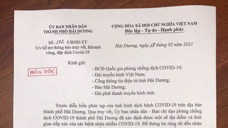 VOV.VN - UBND huyện Cẩm Giàng, tỉnh Hải Dương vừa ra quyết định xử phạt 7,5 triệu đồng về hành vi đăng tải thông tin vu khống thu phí chốt kiểm soát dịch Covid-19 tại thị trấn Lai Cách.