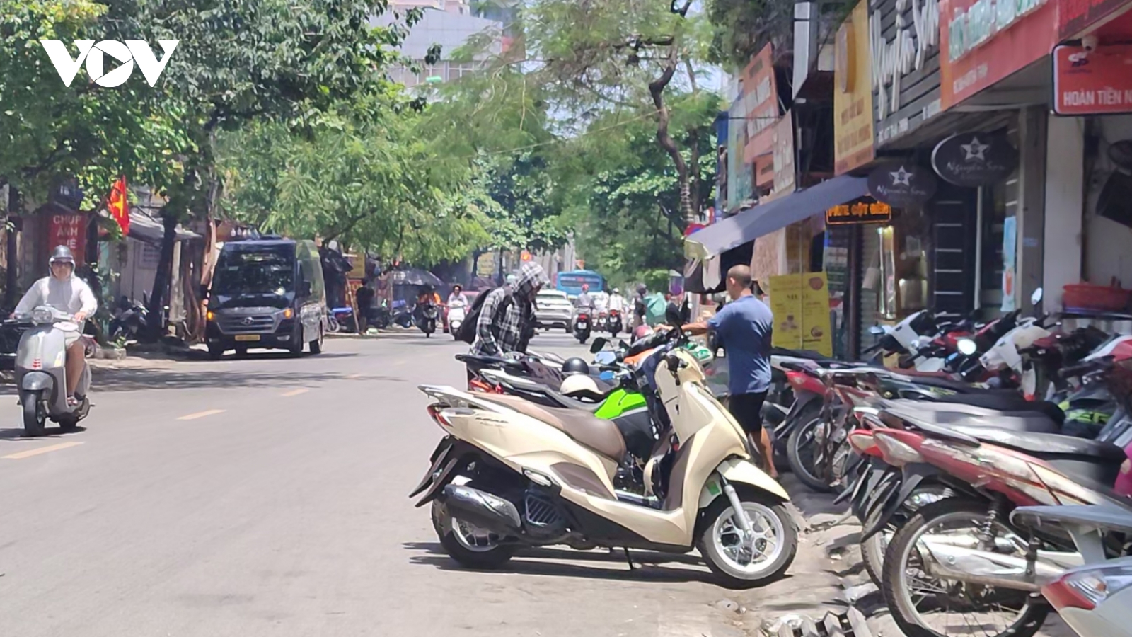 VOV.VN - Tình trạng lấn chiếm vỉa hè, ngang nhiên biến lòng đường thành bãi để xe trước cửa nhiều quán ăn trên đường Thái Thịnh, phường Trung Liệt, quận Đống Đa, Hà Nội trong thời gian dài, điều này cho thấy sự thiếu quyết liệt nếu không nói là "ngó lơ" của chính quyền, các ngành chức năng trên địa bàn.