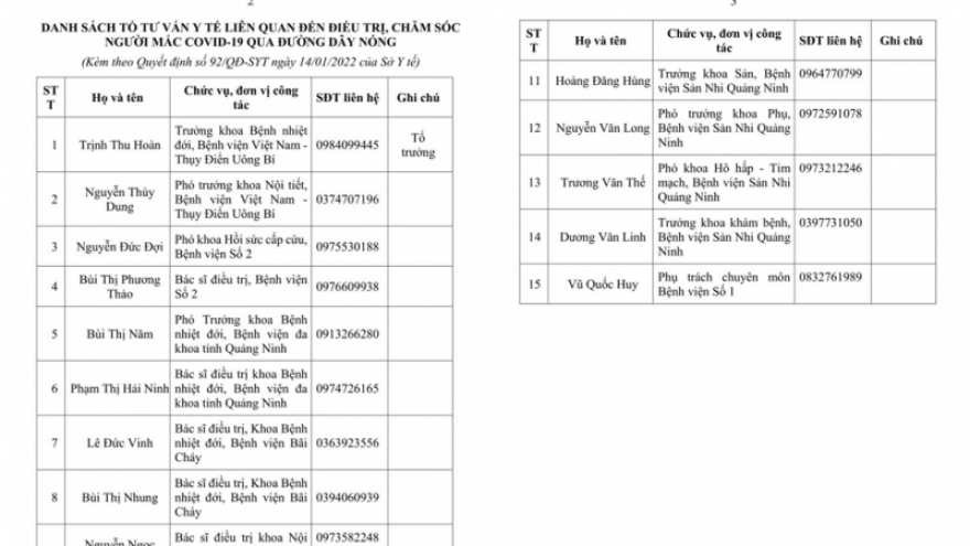 VOV.VN - Để đảm bảo phòng, chống dịch Covid-19 hiệu quả, sở Y tế tỉnh Quảng Ninh vừa có Quyết định thành lập "Tổ tư vấn y tế" hỗ trợ điều trị, chăm sóc người mắc Covid-19 (F0) qua đường dây nóng.