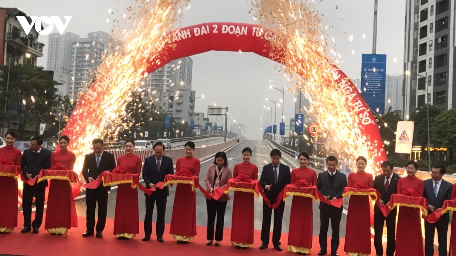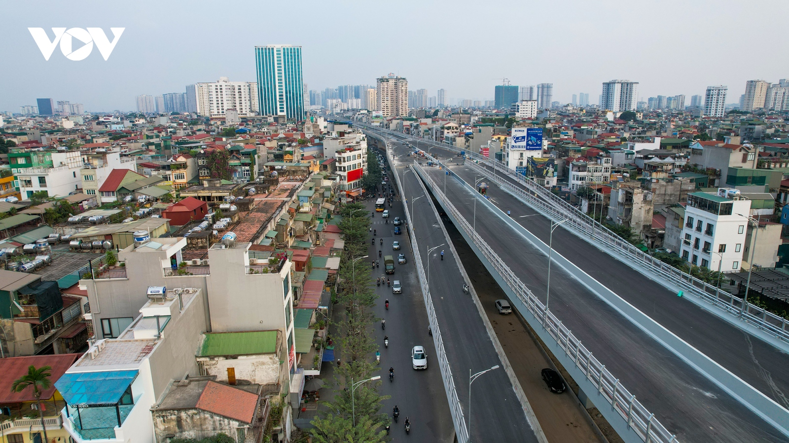 VOV.VN - Dự án đường Vành đai 2 trên cao của Hà Nội, đoạn từ cầu Vĩnh Tuy - Ngã Tư Sở, bao gồm cả tuyến đường bộ trên cao và phần mở rộng dưới thấp với tổng mức đầu tư gần 10.000 tỷ đồng chính thức được thông xe đưa vào sử dụng.