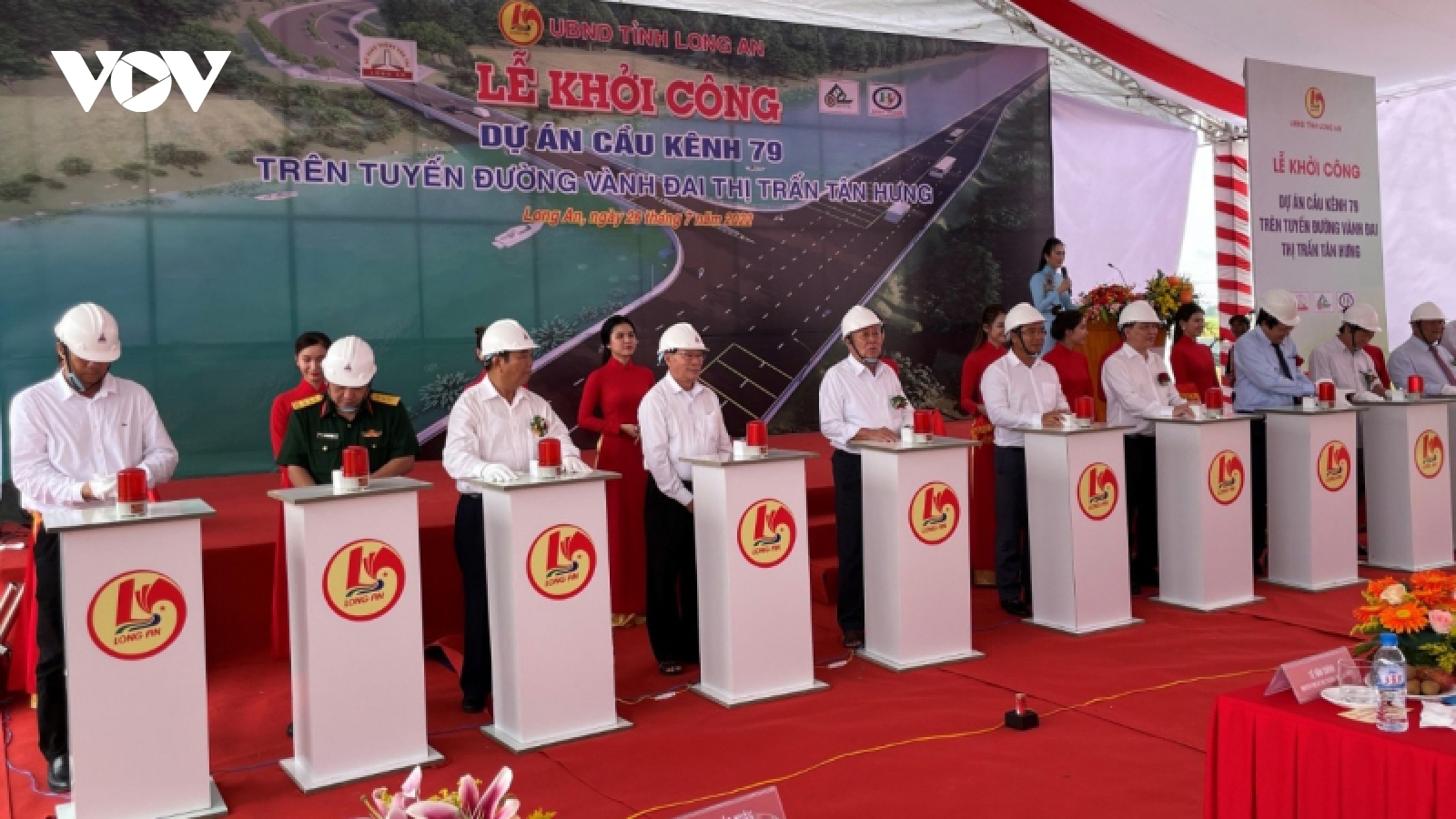 VOV.VN - Sáng nay (26/7), UBND tỉnh Long An khởi công xây dựng công trình cầu Kênh 79 trên tuyến đường Vành đai thị trấn Tân Hưng. Đây là tuyến đường huyết mạch trong vùng biên giới của tỉnh Long An và kết nối với một số địa phương của tỉnh Đồng Tháp.