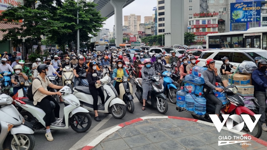 VOV.VN - Áp lực giao thông qua ngã tư Vọng gia tăng sau khi đường Vành đai 2 thông xe. Đặc biệt, trong khung giờ buổi trưa từ 11 - 11h30 có 2 đoàn tàu di chuyển qua, dẫn tới ùn ứ và xung đột giao thông.