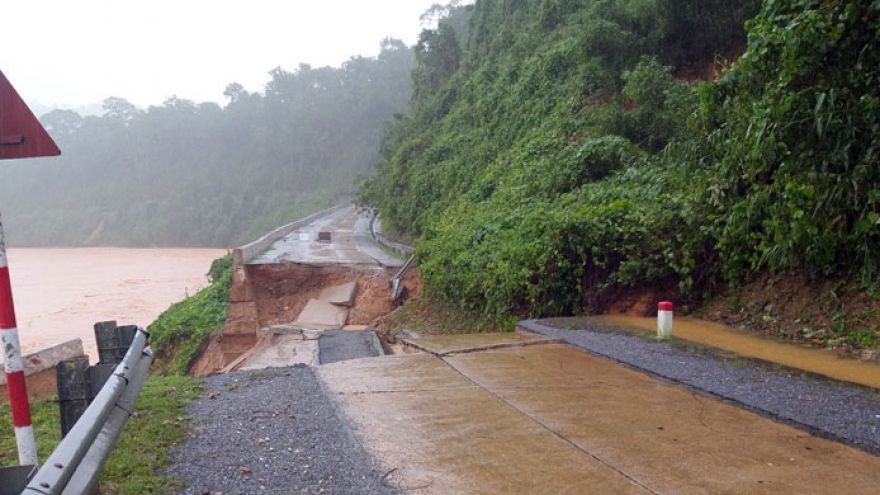VOV.VN - Đường Hồ Chí Minh nhánh Tây là đường độc đạo nối Quốc lộ 9 với các xã biên giới huyện miền núi Hướng Hóa. Do mưa lũ kéo dài, đường này bị sạt lở đặc biệt nghiêm trọng ở nhiều vị trí, gây tắc đường hoàn toàn từ giữa tháng 10 đến nay