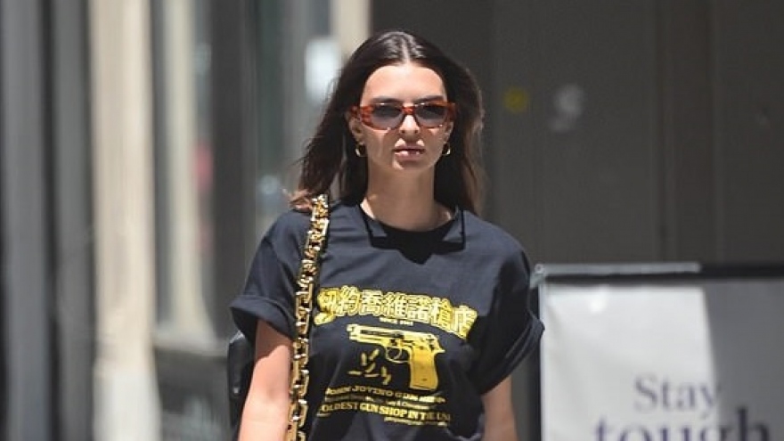 VOV.VN - Emily Ratajkowski mặc áo phông và quần shorts khỏe khoắn, tái xuất trẻ trung trên phố ở New York. Người đẹp lấy lại dáng nhanh chóng sau hơn 3 tháng sinh con.