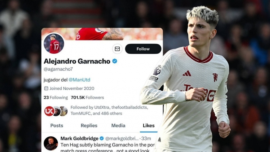 Sao trẻ MU gây "bão mạng" vì thích bài viết chỉ trích Ten HagVOV.VN - Alejandro Garnacho gây "bão mạng" vì thích 2 bài viết chỉ trích HLV Erik Ten Hag sau trận MU hoà Bournemouth 2-2 ở vòng 33 Ngoại hạng Anh.