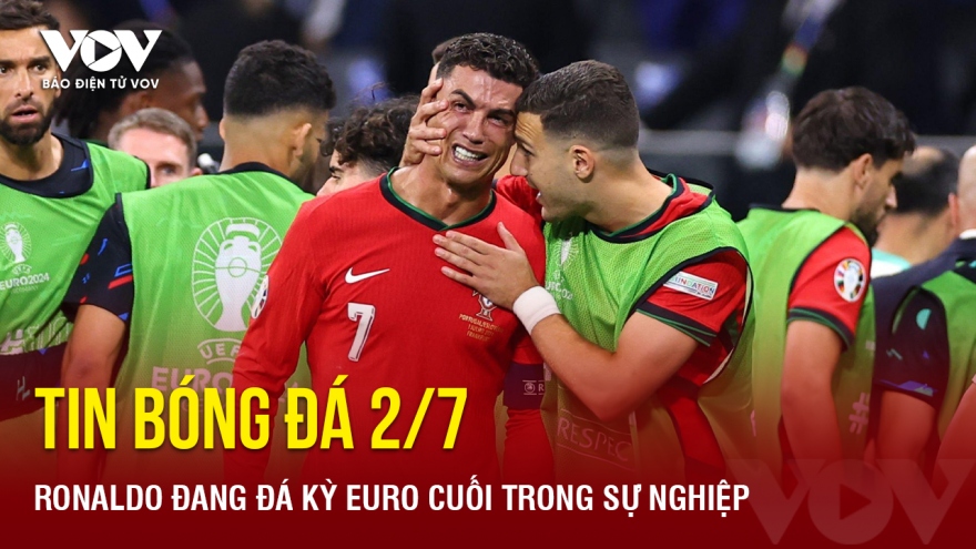 VOV.VN - Tin bóng đá 2/7, Ronaldo đã xin lỗi người hâm mộ Bồ Đào Nha sau khi đá hỏng phạt đền trong trận đấu với Slovenia, đồng thời chia sẻ về khả năng có thể tham dự thêm các kỳ EURO tiếp theo hay không.