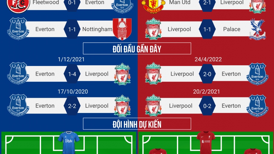 VOV.VN - Dự đoán tỷ số, đội hình xuất phát trận đấu giữa Everton và Liverpool trong khuôn khổ vòng 6 Ngoại hạng Anh 2022/2023 diễn ra lúc 18h30 ngày 3/9 theo giờ Việt Nam.