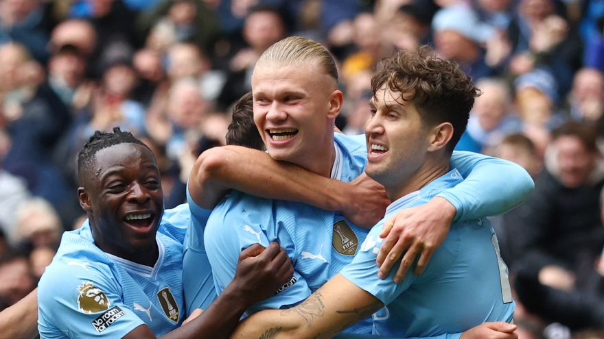 VOV.VN - MU giành thắng lợi với tỷ số 2-0 trước Everton trên sân nhà Old Trafford ở vòng 28 Ngoại hạng Anh 2023/2024. Hai bàn thắng của Quỷ đỏ đều được ghi trên chấm phạt đền sau khi Garnacho lần lượt bị phạm lỗi trong vòng cấm và Bruno cùng Rashford lập công ở các phút 12 và 36.