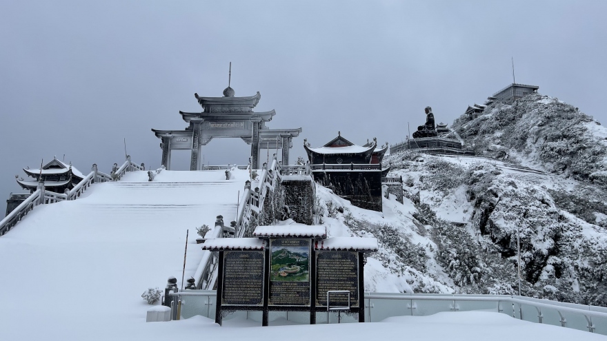 VOV.VN - Sáng sớm (6/12), sương muối tiếp tục xuất hiện, phủ trắng đỉnh Fansipan. Đây là lần thứ 2 tại Sa Pa (Lào Cai) ghi nhận hiện tượng này trong đầu mùa đông năm nay.