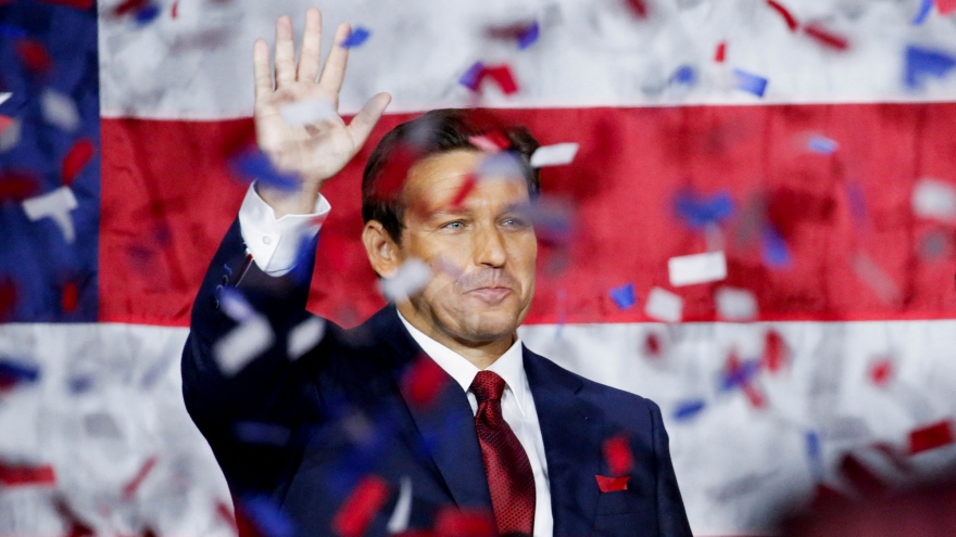 VOV.VN - Ứng viên đảng Cộng hòa Ron DeSantis đã đắc cử nhiệm kỳ thứ hai vị trí Thống đốc bang Florida, AP đưa tin. Ông Ron DeSantis được cho là ứng viên tổng thống tiềm năng của đảng Cộng hòa trong cuộc bầu cử tổng thống Mỹ 2024.