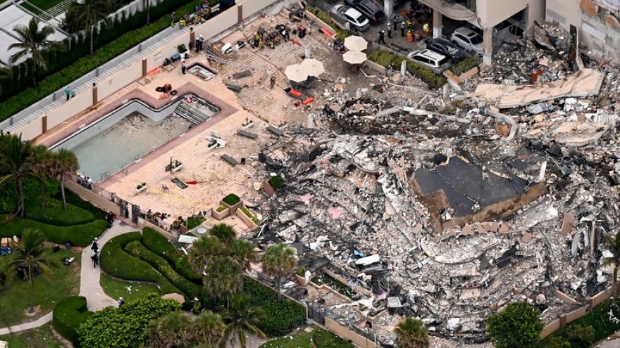 VOV.VN - Cho đến thời điểm hiện tại, có ít nhất 1 người thiệt mạng, 11 người khác bị thương và gần 100 người mất tích sau vụ sập tòa tháp 12 tầng xảy ra hôm qua (24/6) tại thành phố Miami, bang Florida, Mỹ.