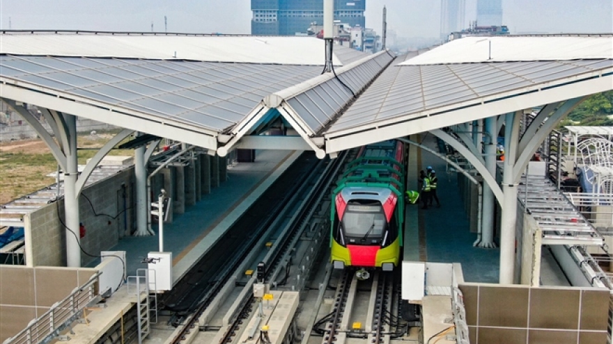 VOV.VN - Đoàn tàu đầu tiên của tuyến đường sắt đô thị số 3, đoạn Nhổn-ga Hà Nội đã chính thức lăn bánh, bước vào giai đoạn thử nghiệm liên động quãng đường 10km trên cao.