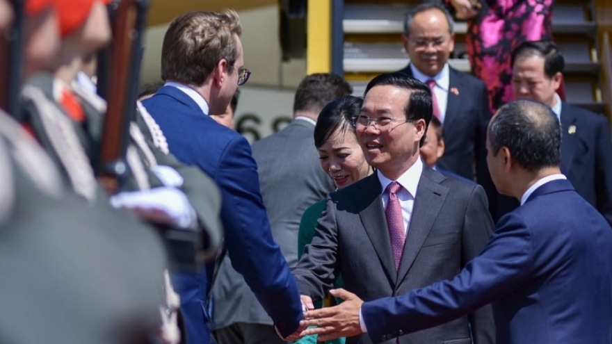 VOV.VN - Chiều 23/7, theo giờ địa phương, sau khi tới Thủ đô Vienna, Chủ tịch nước Võ Văn Thưởng đã gặp gỡ Đại sứ Việt Nam tại Áo và 6 Đại sứ Việt Nam tại các nước EU có chung đường biên giới với Áo gồm: Đức, Bỉ, Séc, Thụy Sĩ, Hungary và Slovakia. Đây là hoạt động đầu tiên trong chương trình thăm chính thức Cộng hòa Áo của Chủ tịch nước.