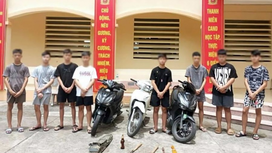 VOV.VN - Sáng 28/8, Công an huyện Quỳ Châu, tỉnh Nghệ An cho biết, đơn vị vừa bắt giữ 8 đối tượng (độ tuổi 16 -21) trú tại xã Châu Hạnh, huyện Quỳ Châu về hành vi gây rối trật tự công cộng.