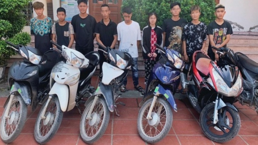 VOV.VN - 11 đối tượng đi xe máy không biển kiểm soát lạng lách, đánh võng, tạt đầu xe ô tô và dùng chân đạp vào bên phía lái của ô tô làm vỡ, hỏng gương chiếu hậu và một số bộ phận khác của xe ô tô khác đi ngược chiều.