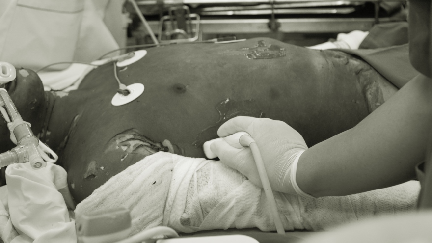 VOV.VN - Liên quan vụ cháy nhà trọ ở Đồng Nai khiến 7 người bị bỏng nặng, có 4 bệnh nhi được điều trị tại Nhi đồng 1 và Nhi đồng 2, TP.HCM. Hiện các bệnh nhi có những bé bị phỏng đến 90% cơ thể, đang phải thở máy.