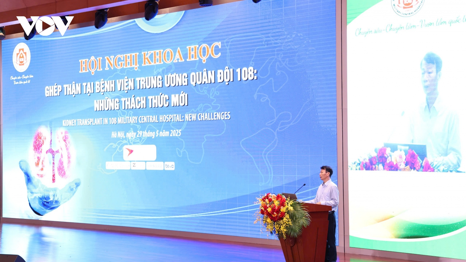 VOV.VN - Hôm nay (29/5), Bệnh viện TWQĐ 108 tổ chức Hội nghị Khoa học “Ghép thận tại Bệnh viện TWQĐ 108: Những thách thức mới”. Đây là sự kiện nhằm tổng kết 500 ca ghép thận tại Bệnh viện, đồng thời chia sẻ kinh nghiệm và thảo luận về những thách thức mới trong lĩnh vực ghép thận tại Việt Nam và quốc tế.
