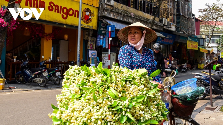 VOV.VN - Trên khắp ngõ ngách phố cổ hay các tuyến phố như Xã Đàn, Phạm Ngọc Thạch, Kim Mã... dễ dàng bắt gặp hình ảnh gánh hàng rong chở đầy những chùm hoa bưởi trắng tinh khôi.