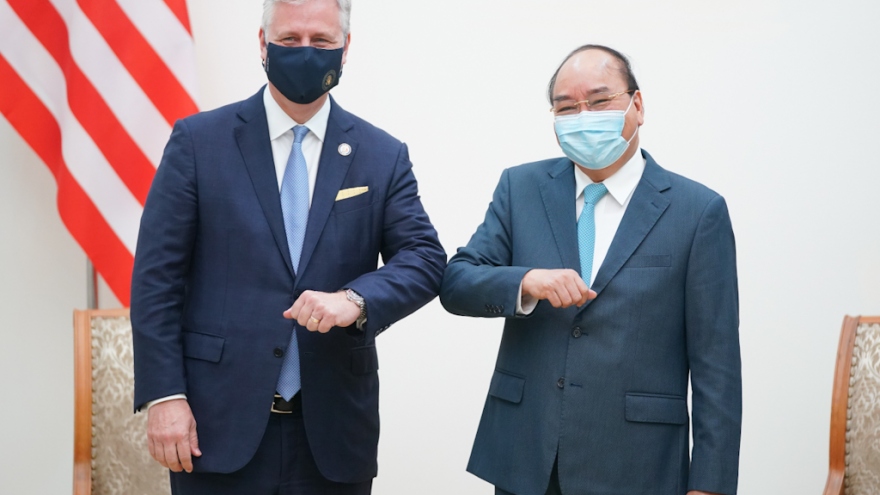 VOV.VN -Ngày 21/11/2020, tại trụ sở Chính phủ, Thủ tướng Chính phủ Nguyễn Xuân Phúc tiếp xã giao Cố vấn An ninh quốc gia Hoa Kỳ đang có chuyến thăm Việt Nam nhân dịp kỷ niệm 25 năm thiết lập quan hệ ngoại giao Việt Nam – Hoa Kỳ.