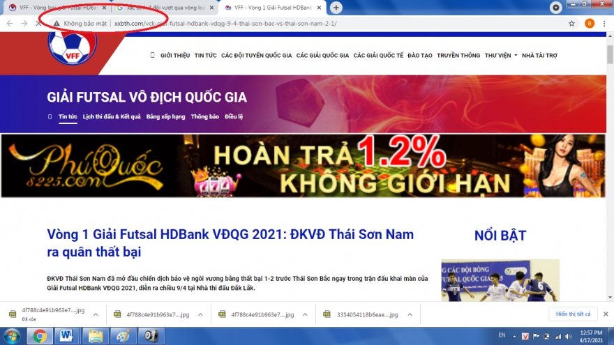 Cảnh báo xuất hiện website mạo danh tại giải Futsal HDBank VĐQG 2021 nhằm mục đích xấu