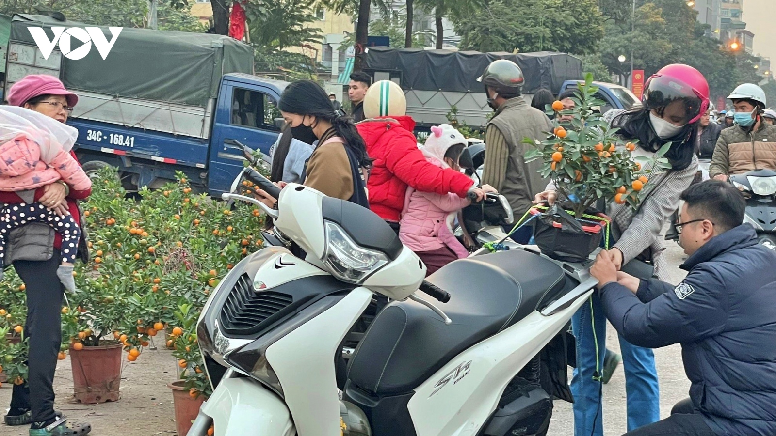 VOV.VN - Quất cảnh nhỏ chậu để bàn giảm còn 50.000 đồng/chậu. Quất cây to 80-120cm giảm đồng loạt còn 150.000-200.000 đồng trong khi những cây to trên 150cm, nhà vườn phải đưa về do không có người mua.