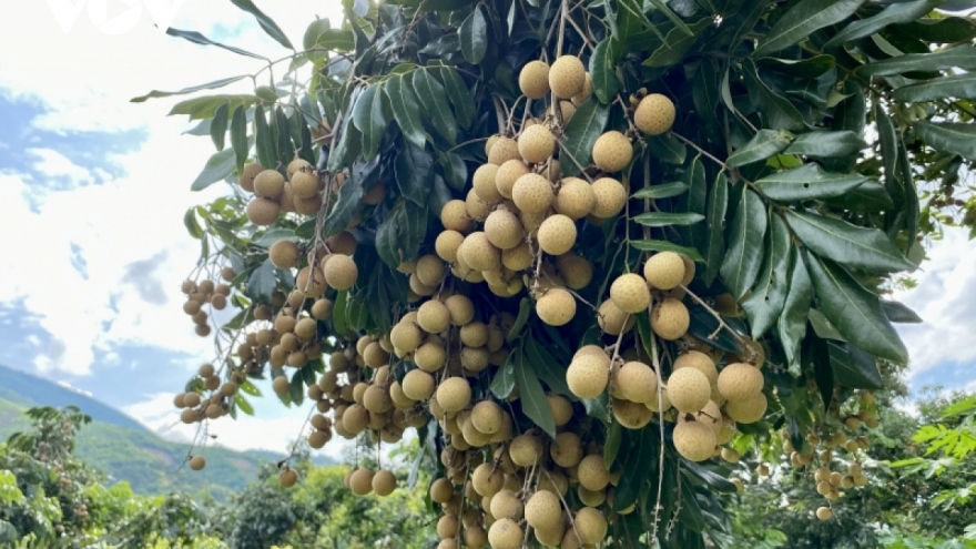 VOV.VN - Hiện tại, nhãn Sông Mã đang vào mùa thu hoạch và được bán khắp các chợ với giá rất rẻ; chỉ 10.000-15.000 đồng/kg loại nhãn quả to, vỏ mỏng, cùi dày và ngọt.