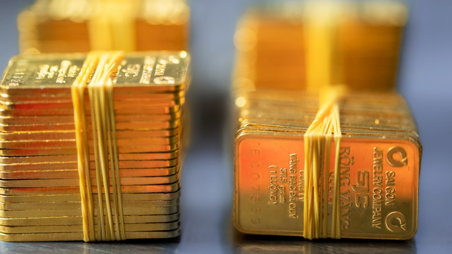 VOV.VN - Giá vàng trong nước giảm theo xu hướng giảm của vàng thế giới, vàng thế giới vẫn thấp hơn 15,46 triệu đồng/lượng so với giá vàng SJC bán ra sáng ngày 6/12.