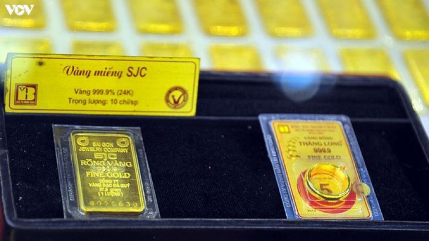 VOV.VN - Giá vàng trong nước tăng theo đà tăng của thị trường vàng thế giới, hiện giá vàng thế giới vẫn thấp hơn 4,99 triệu đồng/lượng so với giá vàng SJC bán ra cùng thời điểm.