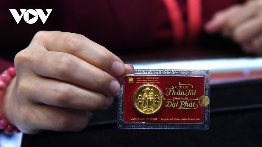 VOV.VN - Mở cửa phiên giao dịch cuối tuần, giá vàng JSC đảo chiều tăng 100.000 đồng/lượng ở chiều bán ra. Giá vàng SJC hiện cao hơn vàng thế giới 8,24 triệu đồng/lượng.