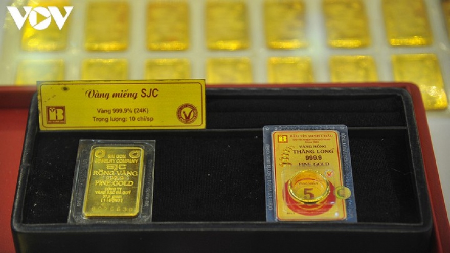 VOV.VN - Sáng 16/12, giá vàng trong nước tiếp tục tăng theo đà tăng của vàng thế giới, vàng thế giới vẫn thấp hơn giá vàng SJC bán ra 3,55 triệu đồng/lượng.
