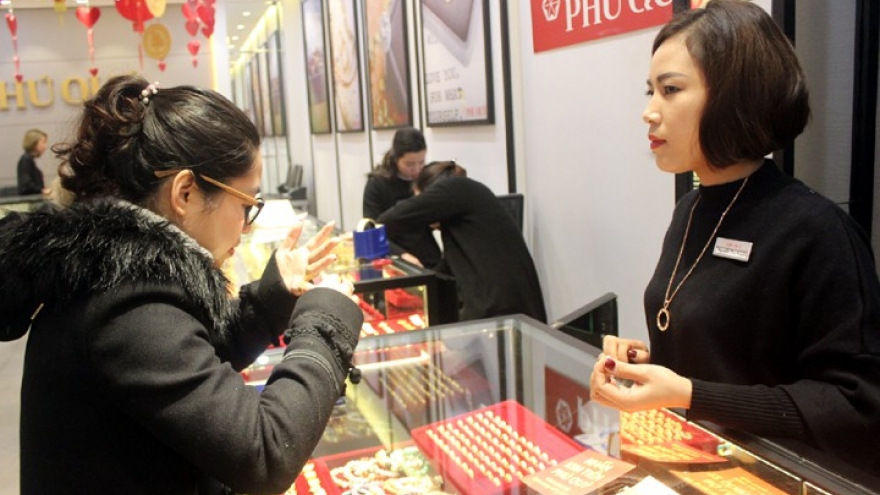 VOV.VN - Sáng 12/10, giá vàng trong nước và thế giới giảm nhẹ sau 4 phiên tăng liên tiếp, giá vàng thế giới thấp hơn 2,47 triệu đồng/lượng so với giá bán ra của vàng SJC.