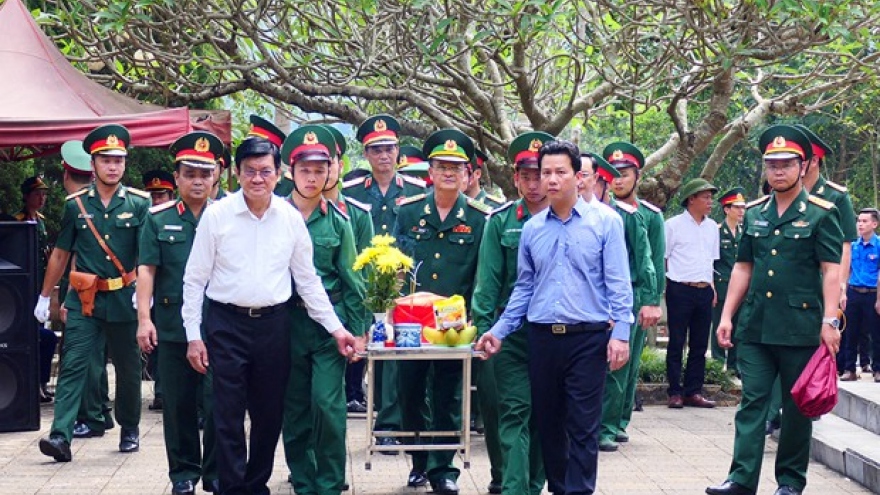 VOV.VN - Sáng 9/5, tại Nghĩa trang Liệt sỹ Quốc gia Vị Xuyên diễn ra Lễ truy điệu, an táng các Anh hùng liệt sỹ hy sinh trong chiến đấu bảo vệ biến giới phía B