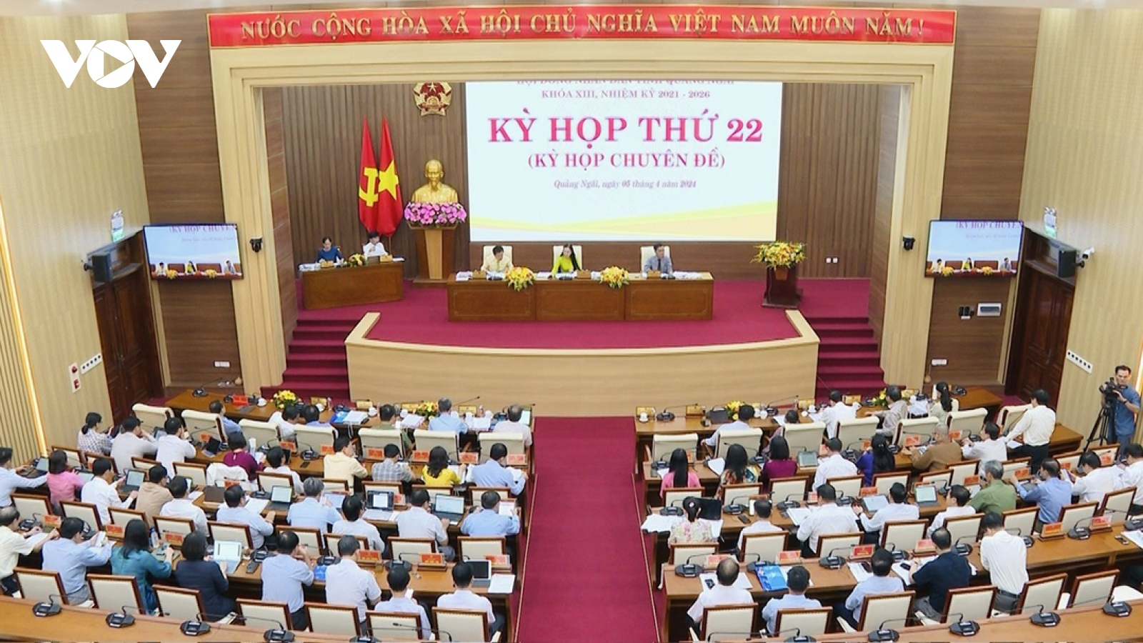 VOV.VN - Hôm nay (5/4), Hội đồng Nhân dân tỉnh Quảng Ngãi khóa XIII, nhiệm kỳ 2021-2026 tổ chức Kỳ họp thứ 22 (Kỳ họp chuyên đề) thảo luận, thông qua nhiều Nghị quyết quan trọng như điều chỉnh kế hoạch đầu tư công trung hạn 2021-2025, chấp thuận chủ trương chuyển đổi mục đích sử dụng đất trồng lúa, rừng phòng hộ sang đất nông nghiệp.