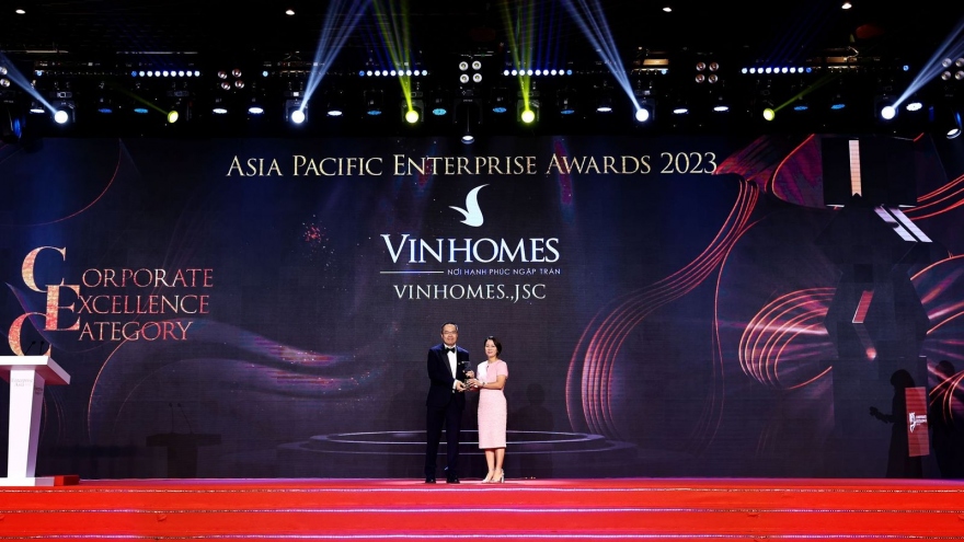 VOV.VN - Ngày 5/10/2023, tại Lễ trao Giải thưởng Doanh nghiệp châu Á - Asia Pacific Enterprise Awards (APEA) 2023, Công ty CP Vinhomes đã được vinh danh tại hai hạng mục quan trọng là Doanh nghiệp xuất sắc châu Á (Corporate Excellence Award) và Thương hiệu Truyền cảm hứng (Inspirational Brand Award).
